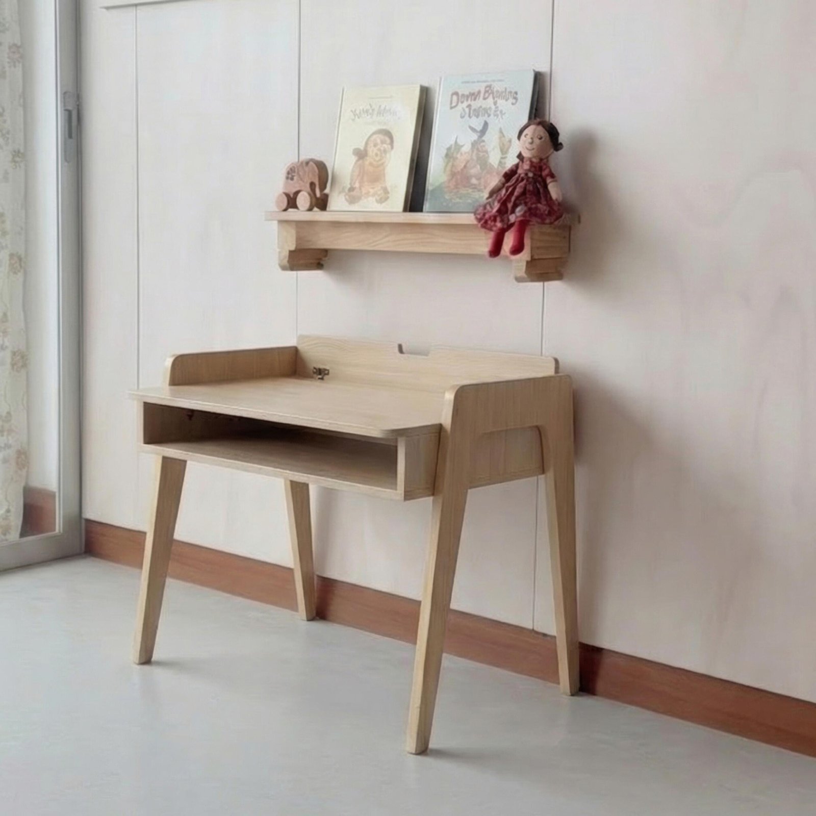 Crafted with clean lines and a warm natural wood finish, this desk is more than just a place to do homework—it’s a dedicated creative station. Its sleek mid-century modern legs and minimalist silhouette ensure it looks beautiful in any room. The standout feature is the integrated hidden paper roll dispenser tucked neatly at the back. Simply pull a fresh sheet across the surface to transform the desk into an instant canvas for painting, drawing, or drafting.
